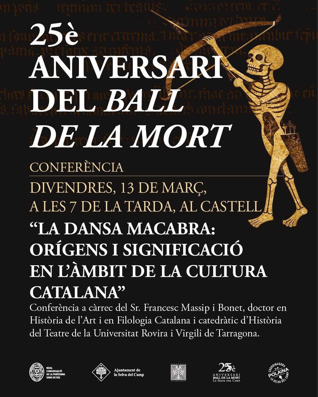 Inici Activitats - Ajuntament de la Selva del Camp Xerrada Conferència “La dansa macabra: orígens i significació en l’àmbit de la cultura catalana” a càrrec de Francesc Massip Bonet, doctor en Història de l’Art i en Filologia Catalana i catedràtic d’Història del Teatre de la URV